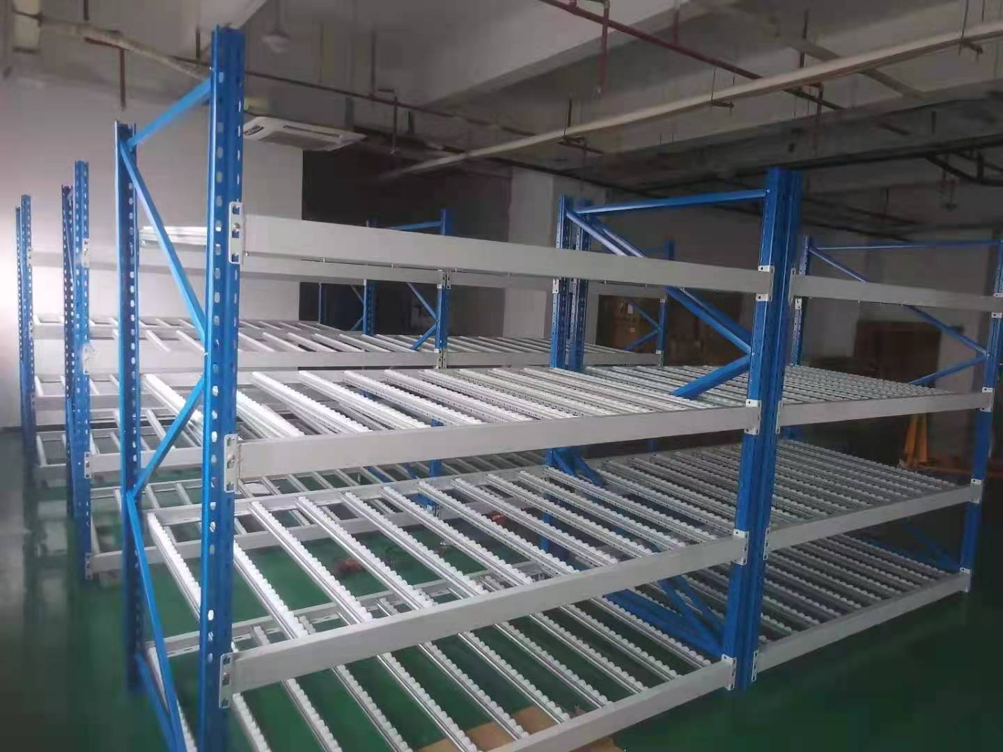 空間利用率極高,適于儲存少品種大排量同類型貨物,貨物可從同一側(cè)存入取出,也可從一側(cè)存入另一側(cè)取出。全插接組裝式結(jié)構(gòu),柱片為裝配式結(jié)構(gòu),靠墻區(qū)域的貨架總深度一般最好控制在5個托盤深度以內(nèi),中間區(qū)域可兩邊進出的貨架總深度一般最好控制在10個托盤深度以內(nèi),以提高叉車存取的效率和可靠性。貫通式通道寬度看托盤和貨物,一般差不多在1.4米多點差不多就行,注意叉車選配時候車身尺寸和貨架向?qū)У拈g距,作業(yè)時候小心操作即可。